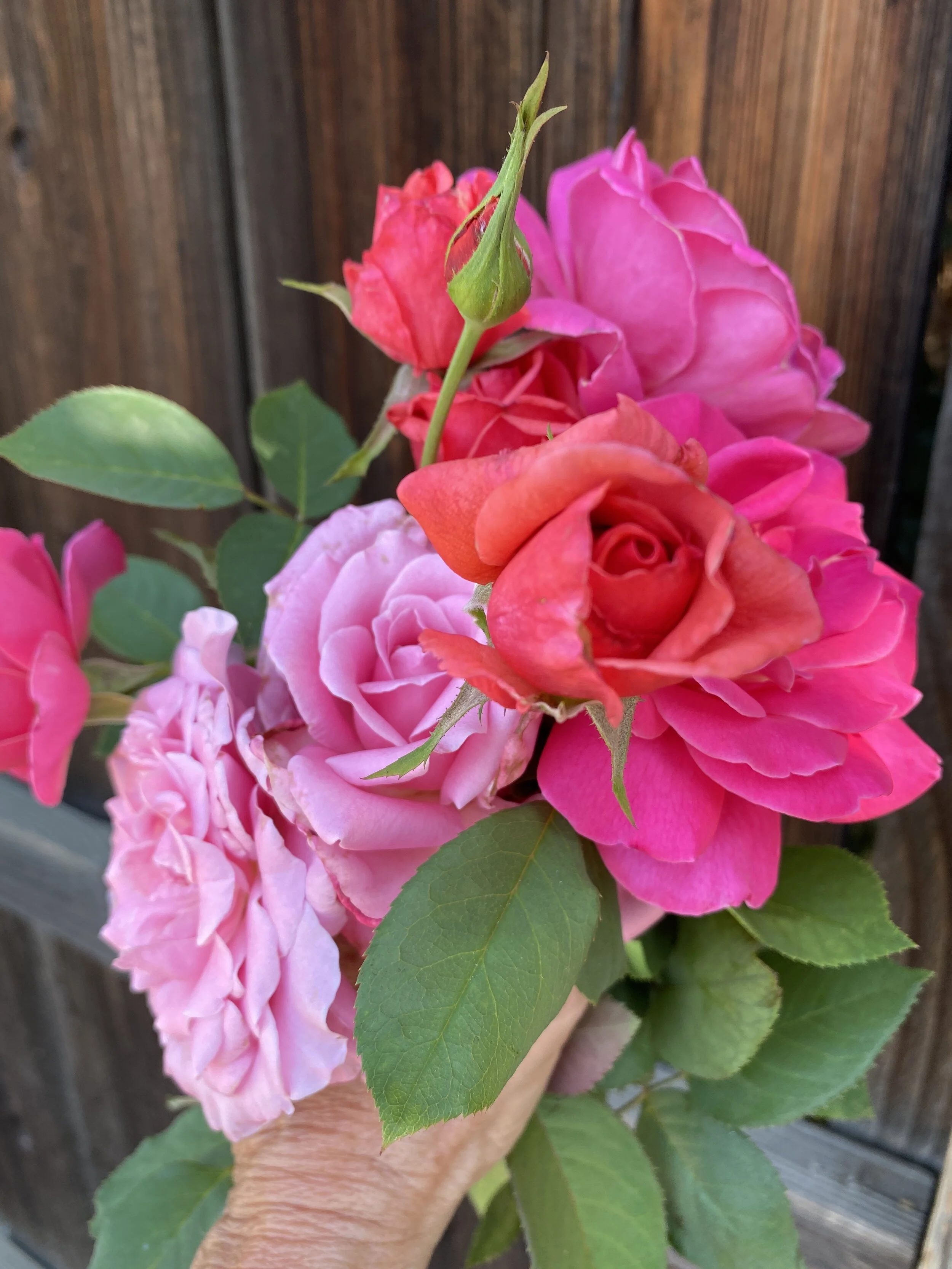 There was a distinct touch of fall in the air when I went to see how the new broccoli and cauliflower seedlings were looking this morning. Zucchini and cucumber vines are still producing although they look tired. And frankly we are just a little bit tired of thinking of new ways to use them! As I was heading in, I saw these beautiful blooms on our roses and couldn’t resist clipping them and snapping a quick picture. Unexpected gifts are the best kind!